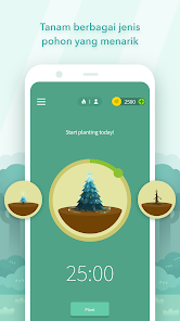 - Mulai sesi fokus pertama — pilih pohon premium favoritmu dan tanam!